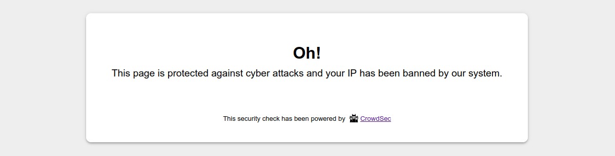 When a user is suspected by CrowdSec to be malevolent, this component will either send him/her a captcha to resolve or simply a page notifying that access is denied. If the user is considered as a clean user, he will access the page as normal.