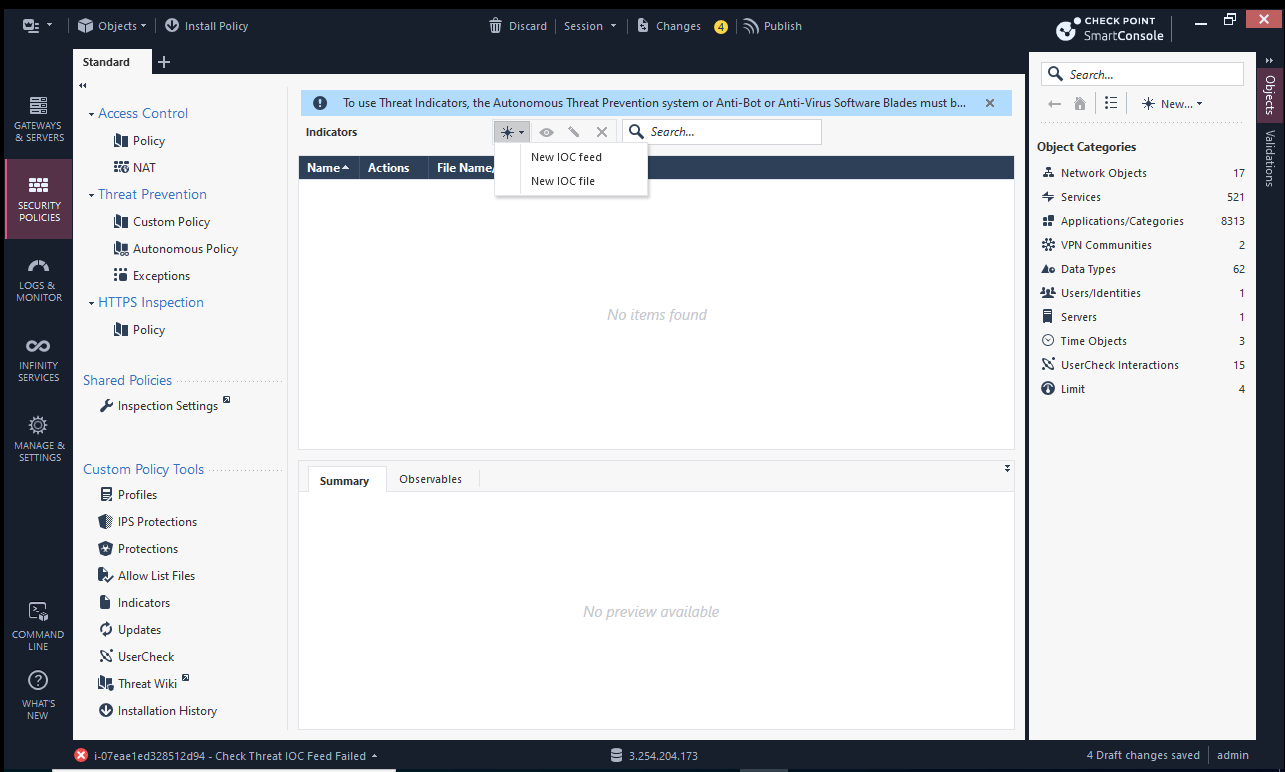 Now go to the "Security policies" tab, and click on "New IOC Feed"