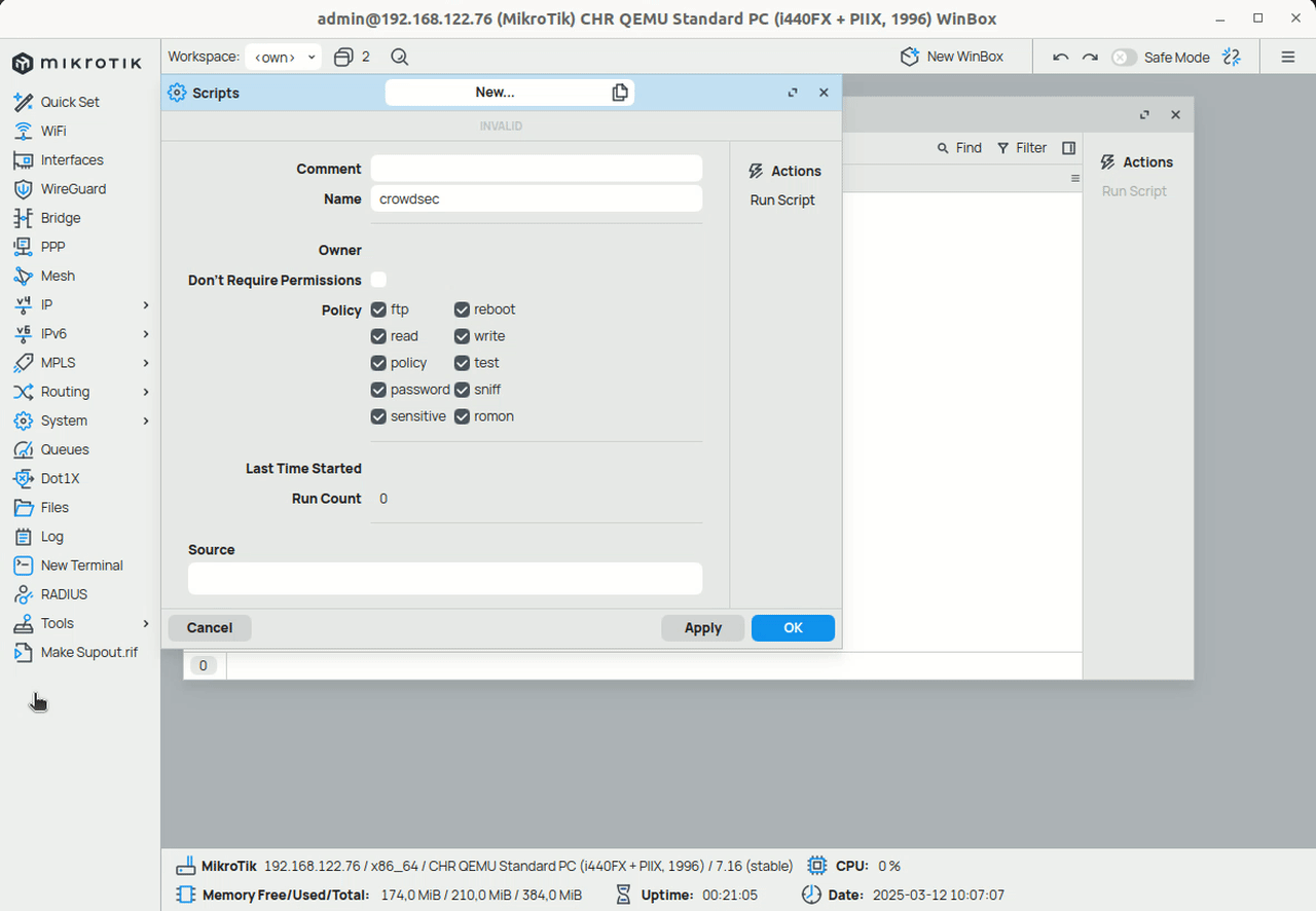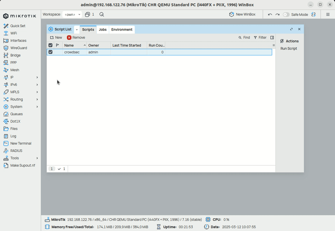 1. Create a script that will fetch the blocklist from the CrowdSec API and import it into the Mikrotik firewall.